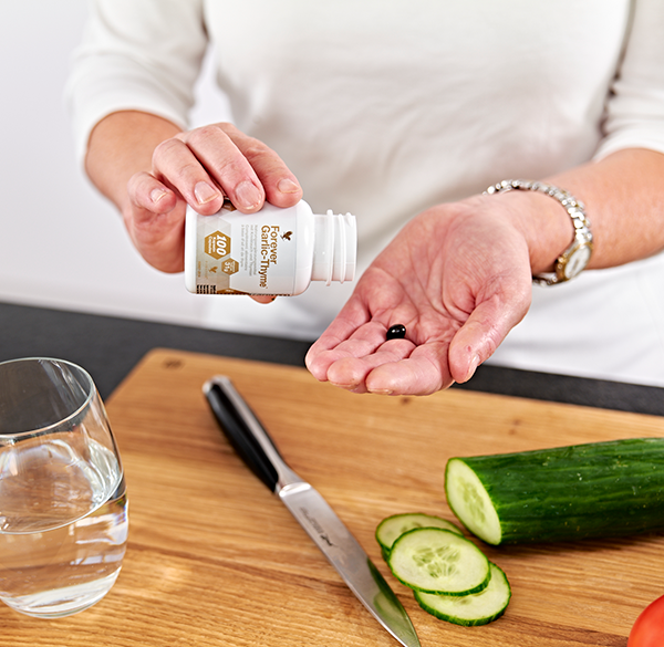 Το σκόρδο και το θυμάρι είναι δυο ισχυρά συστατικά με ιδιότητες που προάγουν την καλή υγεία. Για πλήρες όφελος, λάβετε ένα δισκίο με κάθε γεύμα